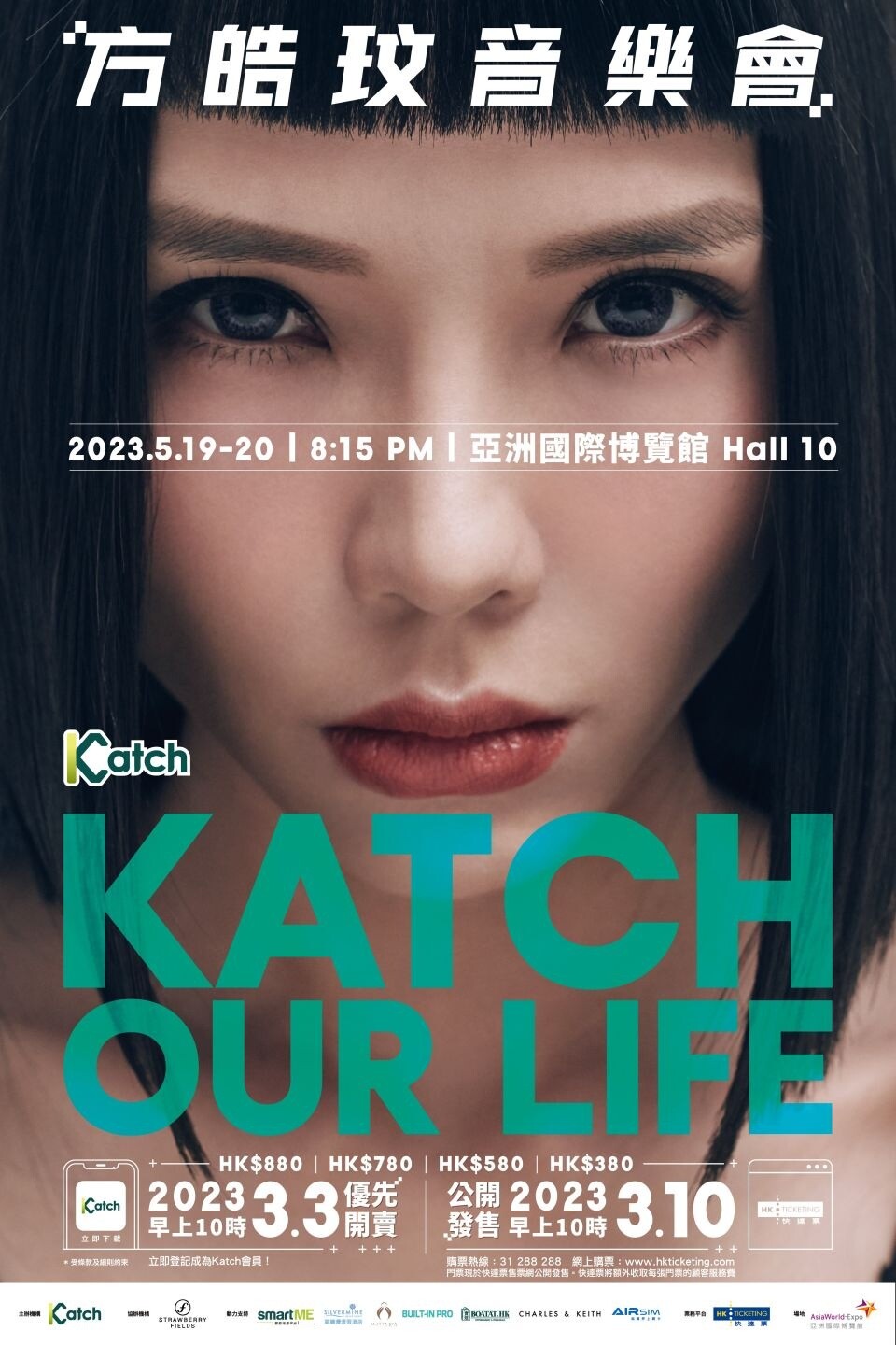 方皓玟 演唱會 2023, 演出日期: 2023年5月19日 - 20日 (共2場), 門票價錢: HK$880 / $780 / $580 / $380, 演出場館: 亞洲國際博覽館 (10號展館), 優先購票: 2023年3月3日 , 公開發售: 2023年3月10日10:00起 HKTICKETING