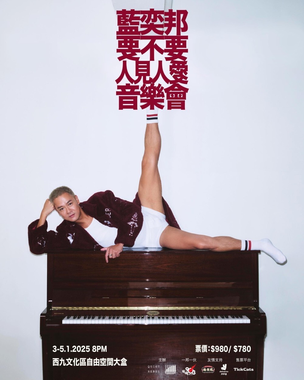 藍奕邦 演唱會 2025, 演出日期: 2025年1月3日 - 5日 (共3場), 門票價錢: HK$980 / $780, 演出場館: 西九文化區 自由空間 大盒, 優先購票: 2024年11月15日12:00起 TICKCATS, 公開發售: 有待公佈