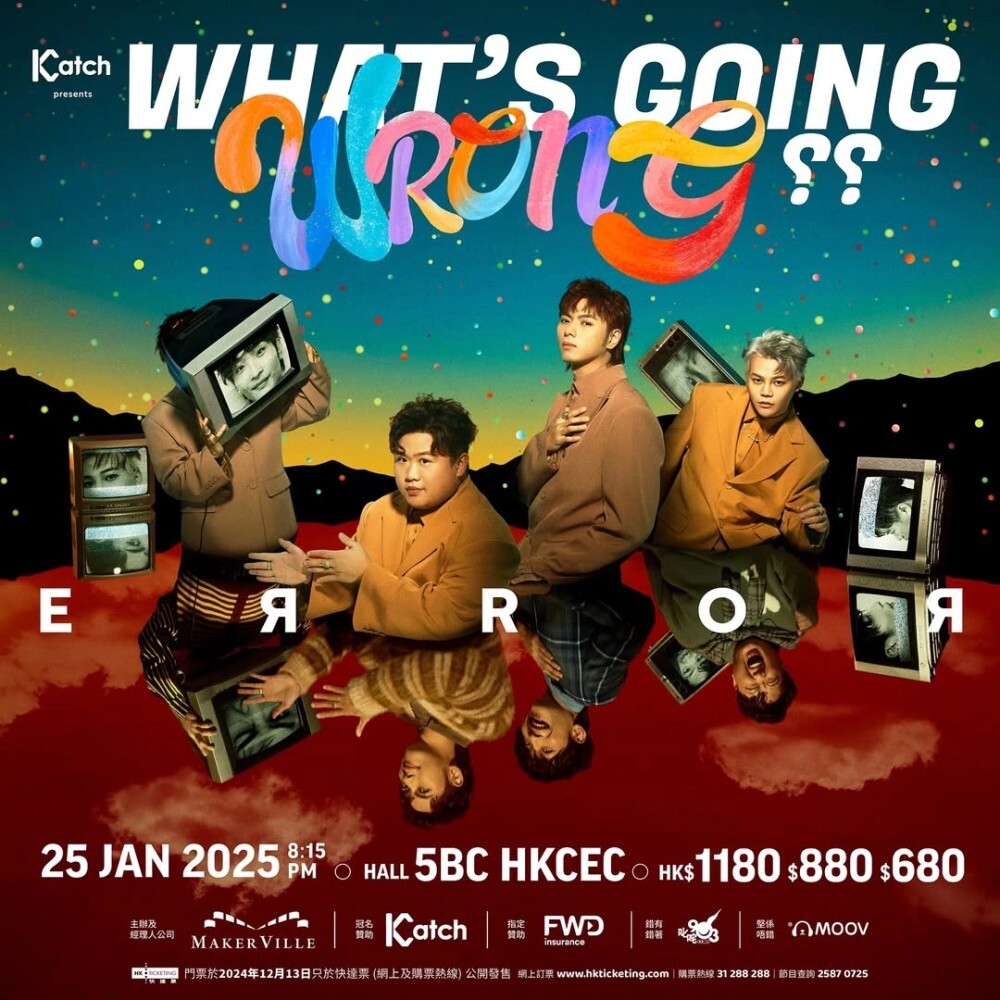 ERROR 演唱會 2025, 演出日期: 2025年1月25日 (星期六), 門票價錢: HK$1180 / $880 / $680, 演出場館: 香港會議展覽中心 Hall 5BC, 公開發售: 2024年12月13日10:00起 HKTICKETING