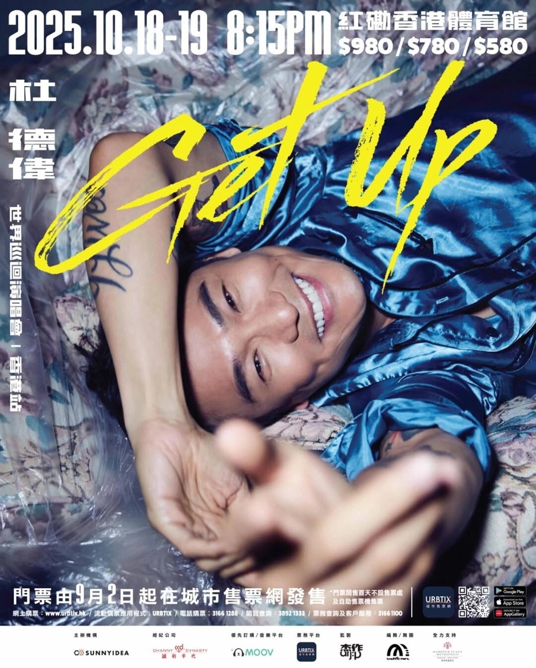杜德偉 紅館演唱會 2025, 演出日期: 2025年10月18日 - 19日 (共2場), 門票價錢: HK$980 / $780 / $580, 演出場館: 紅磡香港體育館, 優先購票: 2025年8月22日11:00起 , 公開發售: 2025年9月2日10:00起 URBTIX
